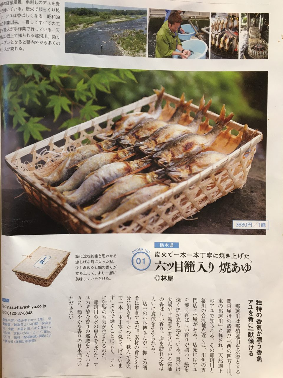 男の隠れ家 2020年8月号 No.287 2020.06.27 メディア 「六ツ目籠入り 焼あゆ」が紹介されました! 発行日:2016年6月27日発行 出版社:三栄 定価750円 (本体価格682円)