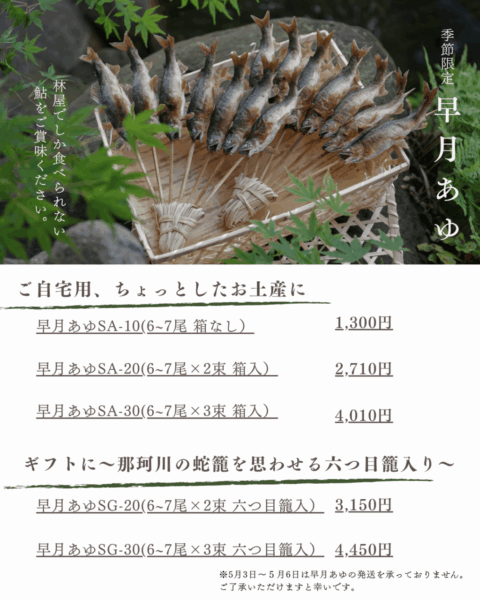 炭火でじっくり、手間暇をかけて焼き上げた林屋の鮎。