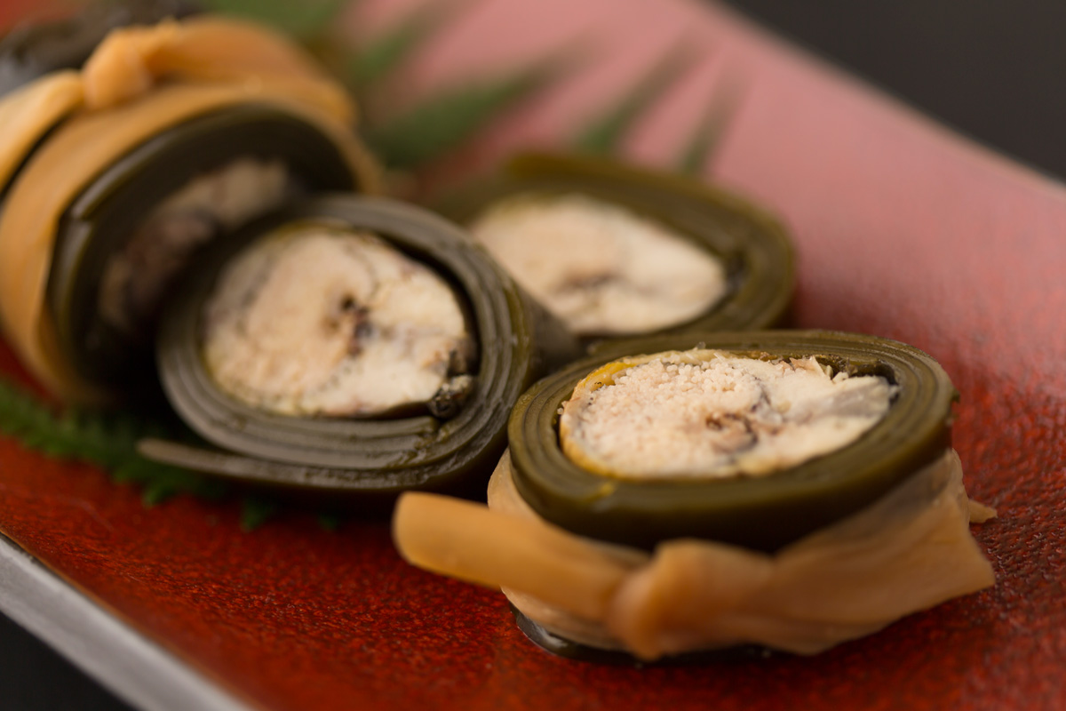 将炭烤香鱼放入海带卷或甘露煮中。用秘传的酱料进行慢慢熬煮,提升了香鱼的美味。